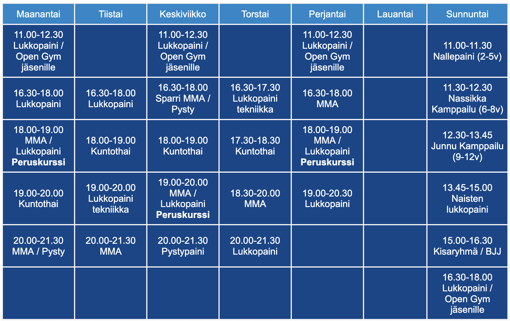 MMA Team 300 Harjoitusaikataulu